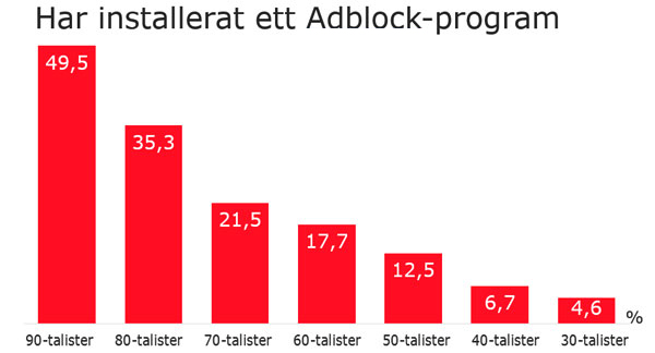 I grafen ser ni spridningen av adblocker i olika generationer och bilden talar för sig själv.