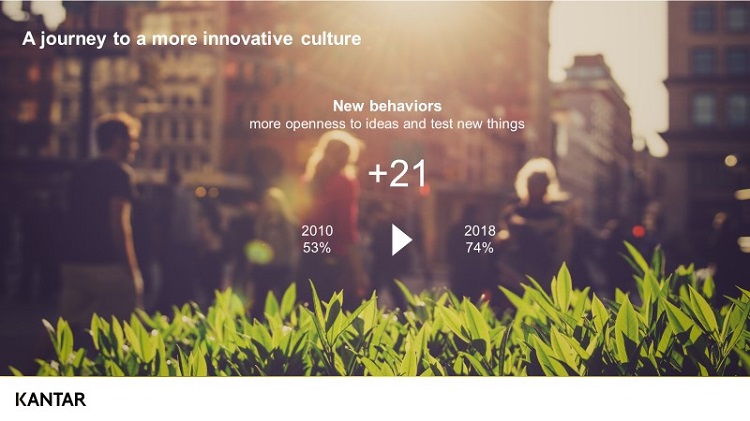 Vi ser dessa omställningar och förändringar äga rum såväl i data från våra globala konsumentstudier som i våra medarbetarstudier. Tar vi medarbetares egna upplevelser, så kan vi se att den innovativa kulturen är på uppgång på global nivå under de senaste fem åren. Dock är det tydligt att det finns ytterligare potential att stärka förnyelsekraften ute i företag.