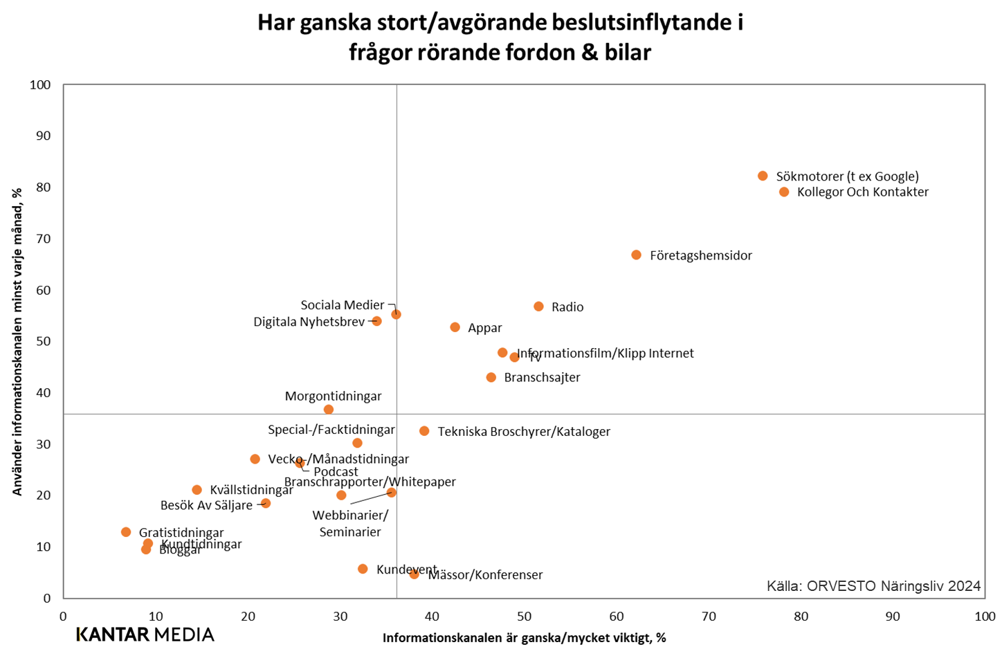 Jag har inte glömt våra beslutsfattare kring fordon och bilar såklart. För dem blir sammanfattningen lite annorlunda. Punkt 2 och 4 gäller även för denna målgrupp, däremot är varken sociala medier eller digitala nyhetsbrev något som kommer att göra något större avtryck här. Kommersiell radio sticker å andra sidan ut även när det gäller viktighet, så detta är en kanal som du bör ha med i din mediemix: