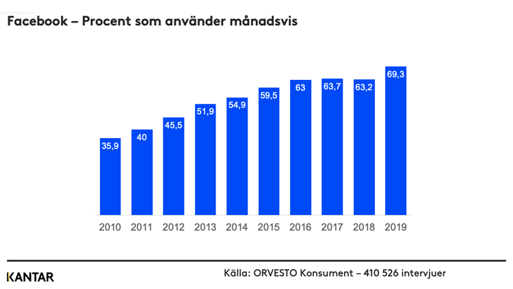 Facebooks utveckling har varit exceptionell, att säga något annat vore en underdrift. När vi analyserar data från de senaste tio åren så ser vi hur man gått från att vara ett ”vi når många” till ett ”vi når nästan alla” medium.