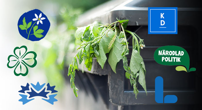 Miljöpartiet och Sverigedemokraterna håller än så länge fast vid sina blommor, maskrosen och blåsippan som precis som den röda rosen bär starka metaforiska värden väletablerade genom vår sociala interaktion och kulturella företeelser. Den rara lilla blåsippan som i backarna står när vi väntat på vår och värme under den långa hårda vintertiden. Som betraktas som något vi vill värna och skydda, fridlyst och skör. Nationalromantik och nostalgi à la Elsa Beskow. Dock refererar logotypens färgsättning mer till den svenska flaggan än den autentiska blåsippan.