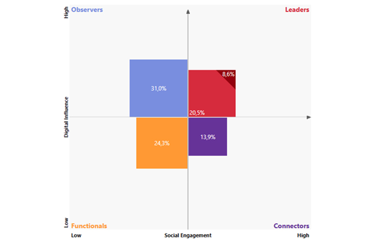 Tidigare har modellen bestått av fyra segment som visar vilken typ av digitala användare som döljs inom en målgrupp; Functionals, Observers, Connectors och Leaders.
