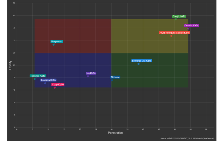 Lojalitet = Köper oftast / Penetration som %