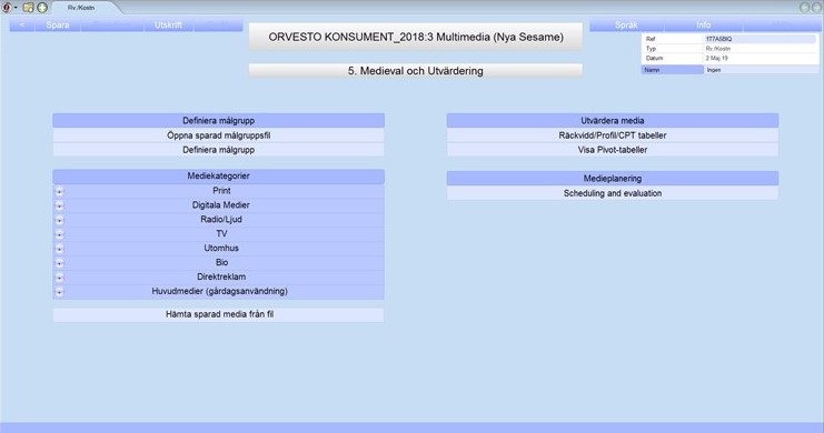 Medieplaneringen har fått ett uppdaterat utseende med en ny meny för att välja medier och en del överflödiga knappar har försvunnit. Den nya mediemenyn är ett resultat av önskemål från användarna om att förenkla sättet att välja medier, och i den nya vyn redovisas samtliga medier på huvudmedianivå direkt i medieplaneringsvyn.