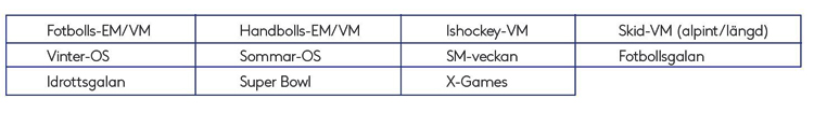 ORVESTO Passion 2018 har ännu mer information om svenskarnas sportintressen och favoritidrotter. Numera frågar vi även om Champions Hockey League och ishockeylandslaget dam och herr. Naturligtvis har vi uppdaterat listan med ridsportlandslaget! Dessutom har vi lagt till en helt ny kategori som handlar om idrottsevenemang, där vi mäter kännedom, intresse, om man följer i media/på plats och om man är intresserad av att följa på plats för 11 olika idrottsevenemang, enligt listan nedan.