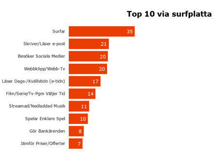 Nya ORVESTO® Konsument 2015:1 innehåller även en helt ny fråga som beskriver hur konsumenter använder olika digitala plattformar samt vilka aktiviteter vi utför via respektive plattform. Plattformarna som undersökts är dator, surfplatta, mobil och TV/ uppkopplad tv (d.v.s. smart TV, Apple tv, spelkonsol eller liknande).