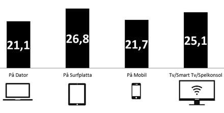 Plattformarna som undersökts är dator, surfplatta, mobil och TV/ uppkopplad tv (d.v.s. smart TV, Apple tv, spelkonsol eller liknande).